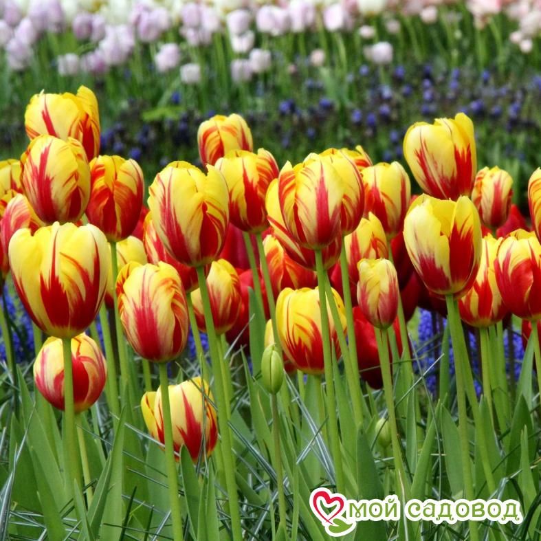 Читать далееТюльпан Триумф Холланд Куин — яркий, шикарный представитель раннецветущих растений, чьи бутоны распускаются в начале марта (на юге). Цветы продолжают радовать красивым цветением в течение 2 недель. Пестрый, желто-красной окраски бутон диаметром 15 см удерживается на цветоносе высотой до 70 см, хорошо смотрится в составе букетов. Сорт отлично размножается, подходит для горшечной выгонки.